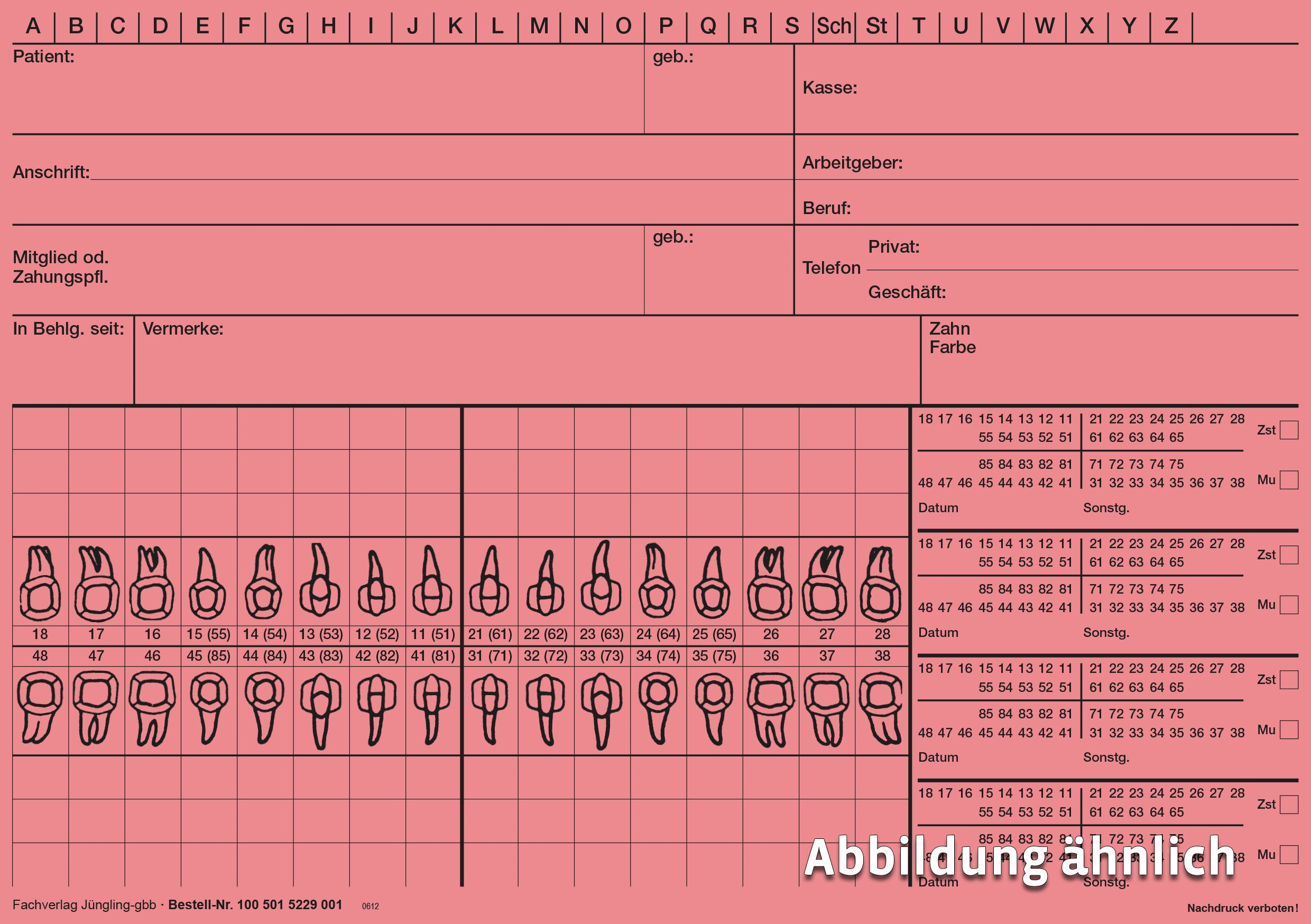 Produktinformationen "Zahnarzt Kartei einfach, rosa"