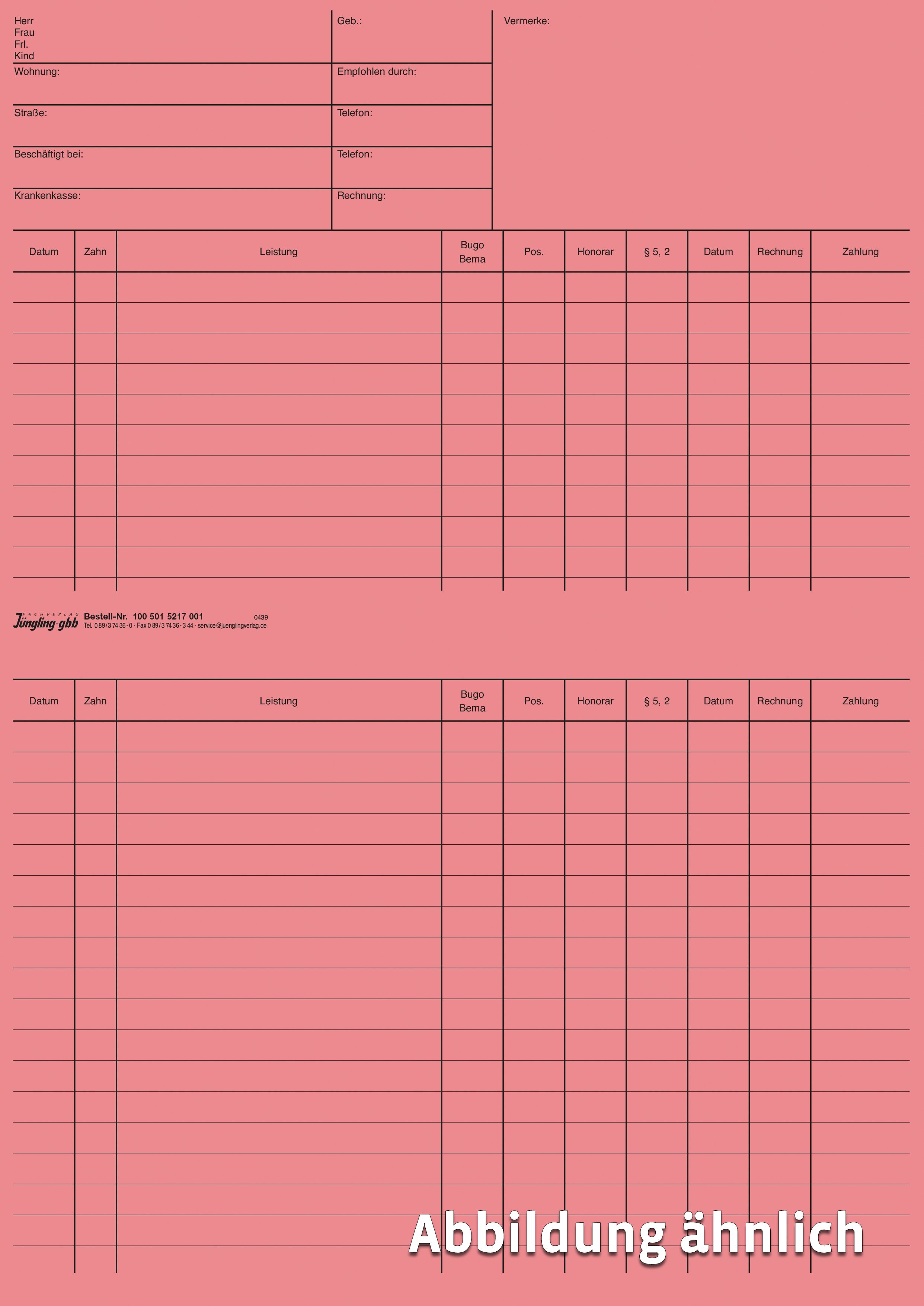 Zahnarzt Universalkartei doppelt, rosa