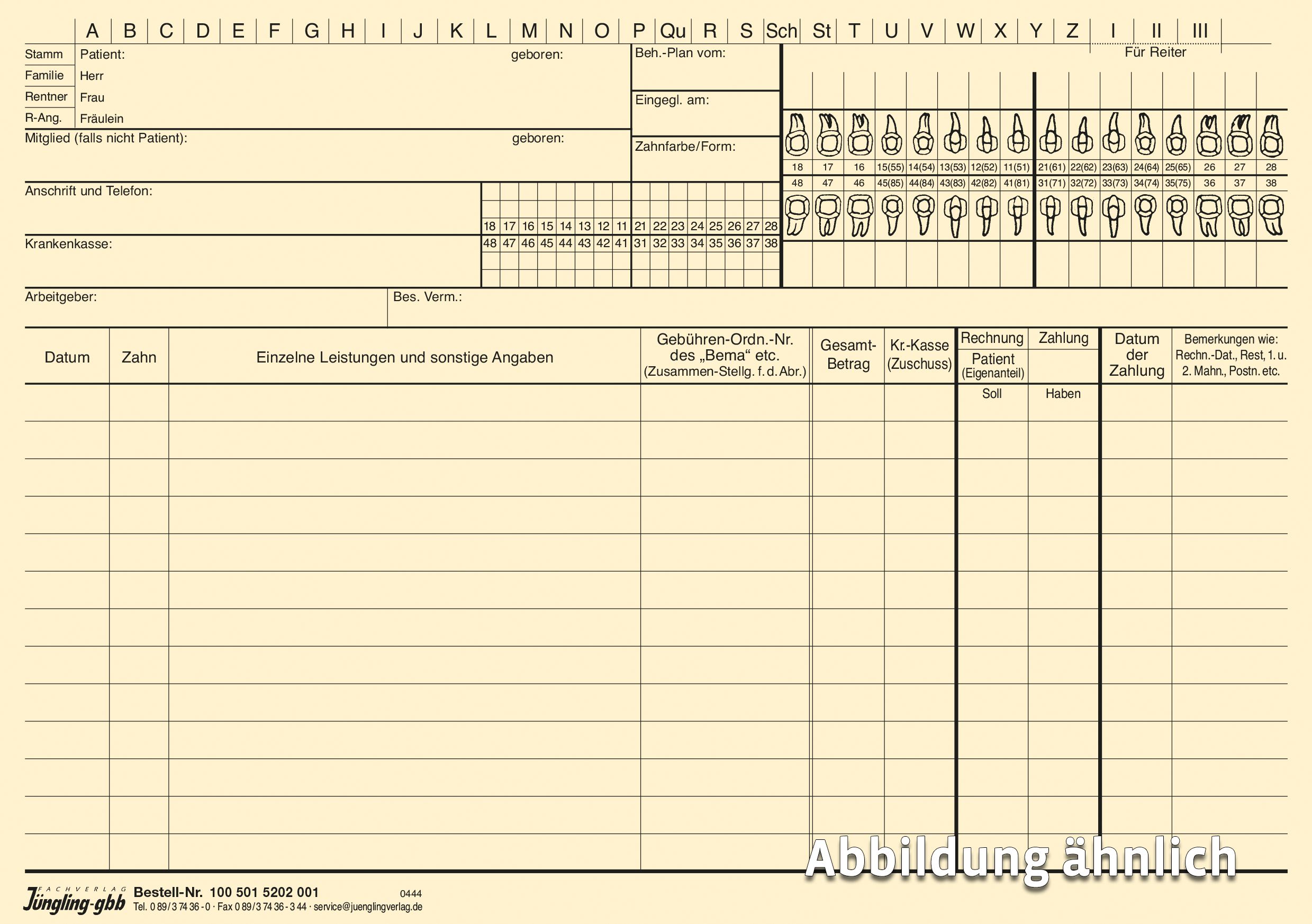 Produktinformationen "Zahnarzt Universalkartei, einfach, chamois"