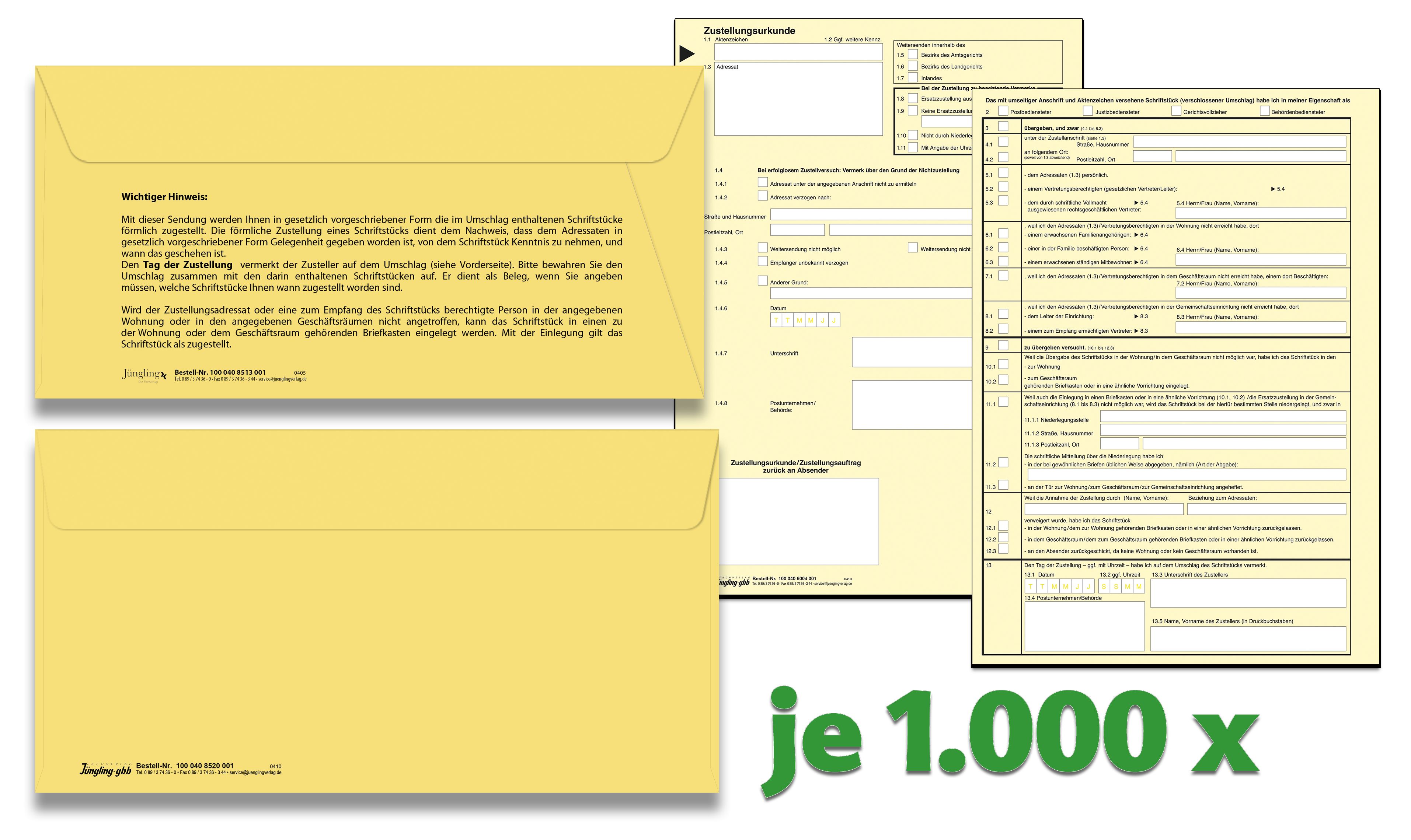 Zustellungs-Paket für Gerichtsvollzieher und Behörden mit PZU