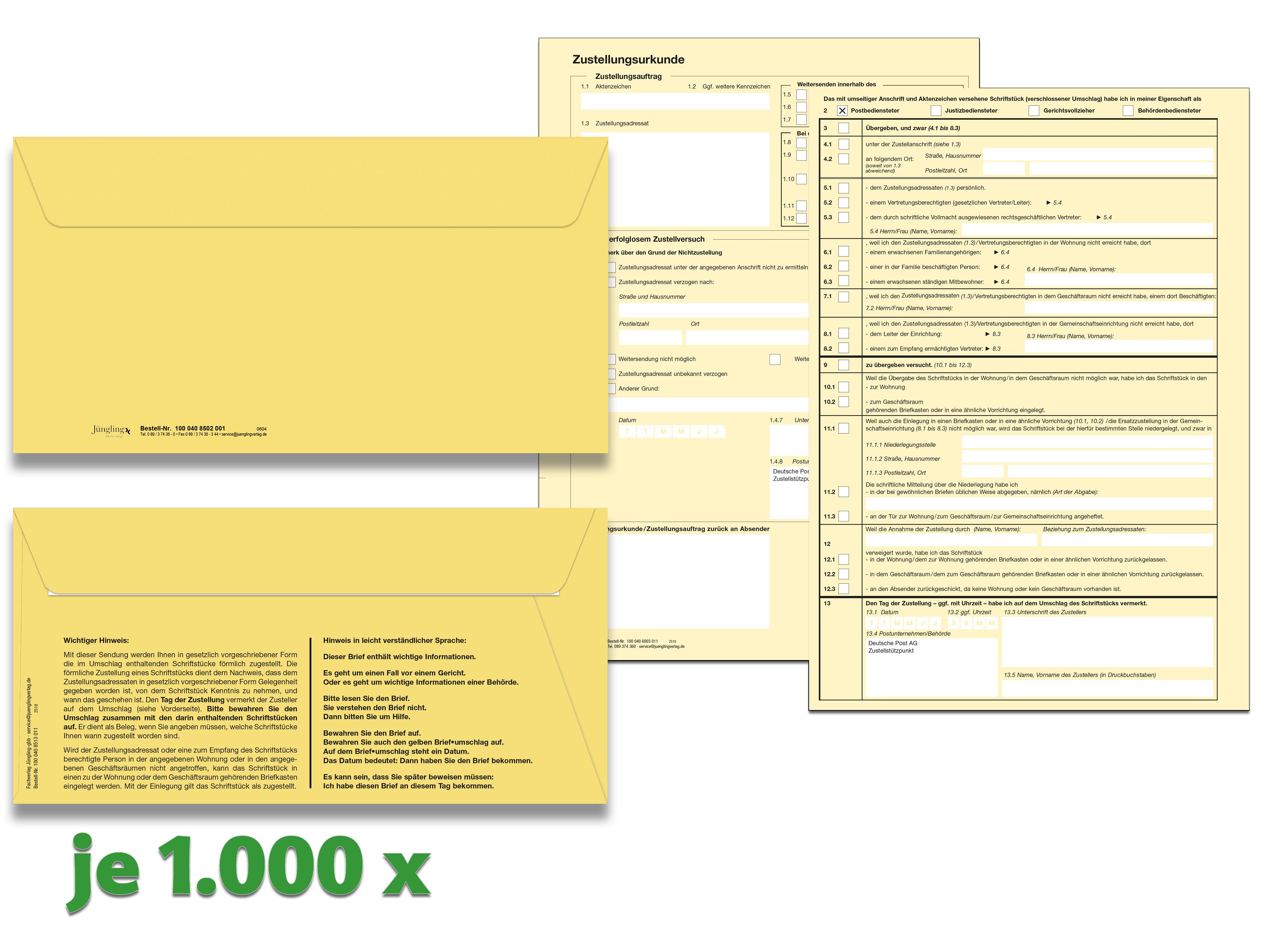 - 1.000 formelle Zustellungsumschläge (innerer Umschlag)
