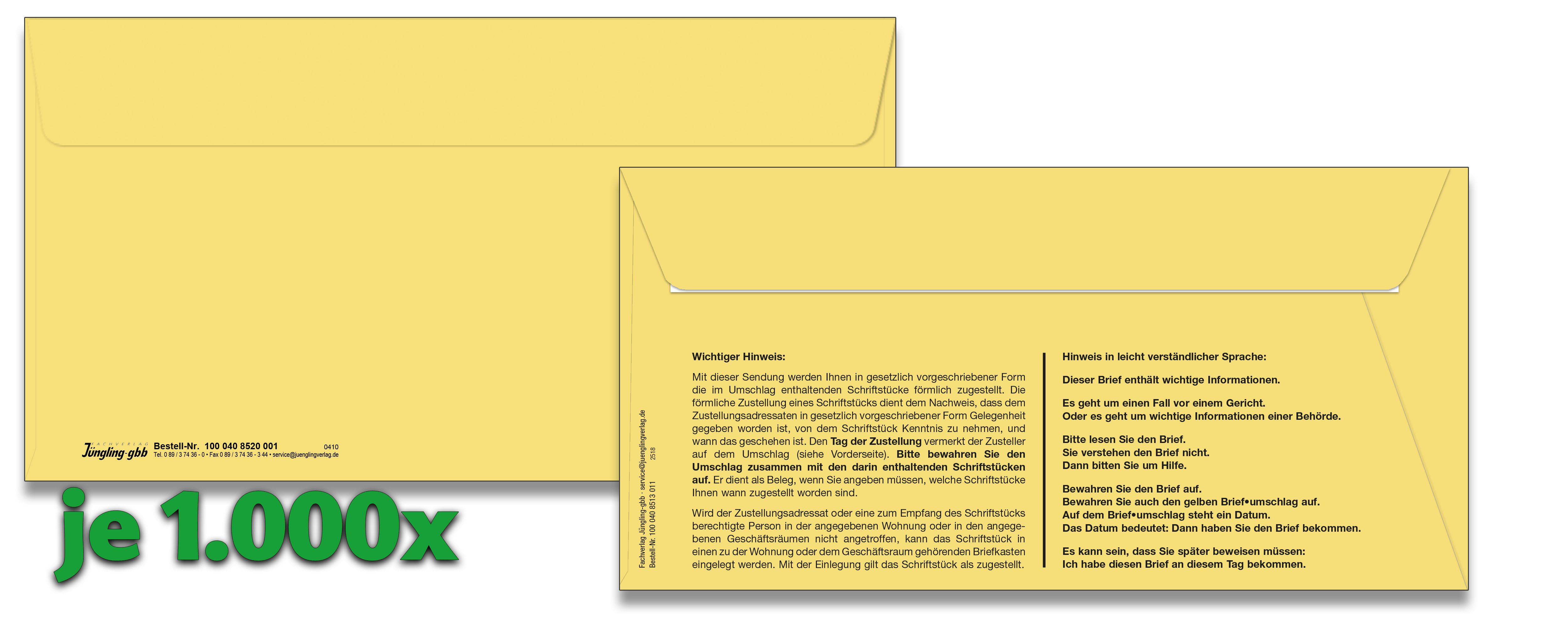 - Förmliche Zustellung (innerer Umschlag): 1.000 Stück