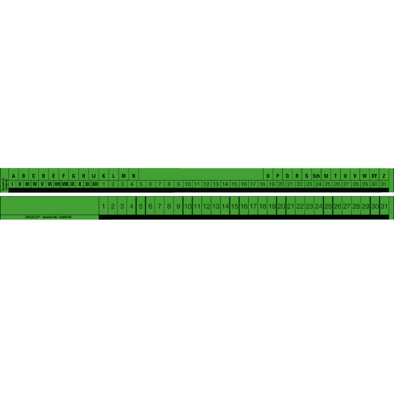 ORGALEX® Organisationsstreifen, Vorderseite: 1-31, Rückseite: A–Z, I–XII, 1–31 - grün