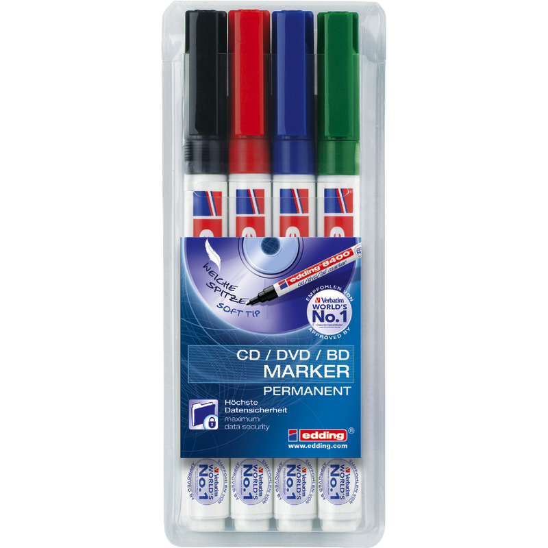 edding CD/DVD/BD Permanentmarker 8400, Etui mit 4 farbsortierten Stiften