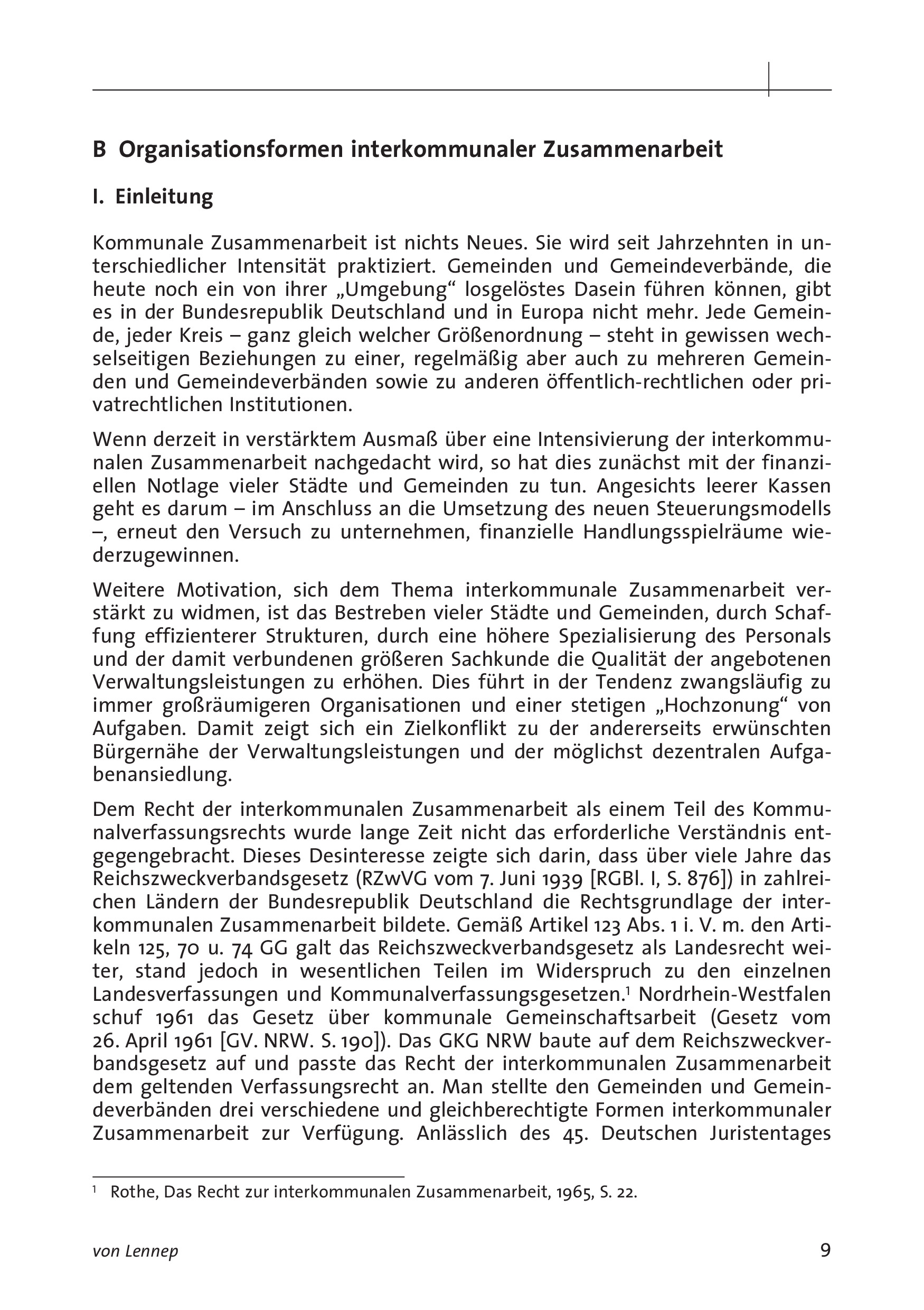 Die prekäre Finanzlage zwingt die Städte und Gemeinden bei allen Leistungen und Aufgaben zu überprüfen, ob sich diese im Verbund mit anderen Kommunen rationeller, kostengünstiger oder gar besser realisieren lassen. Deshalb sehen zahlreiche Städte und Gemeinden zukünftig eine weiter steigende Bedeutung der interkommunalen Zusammenarbeit.