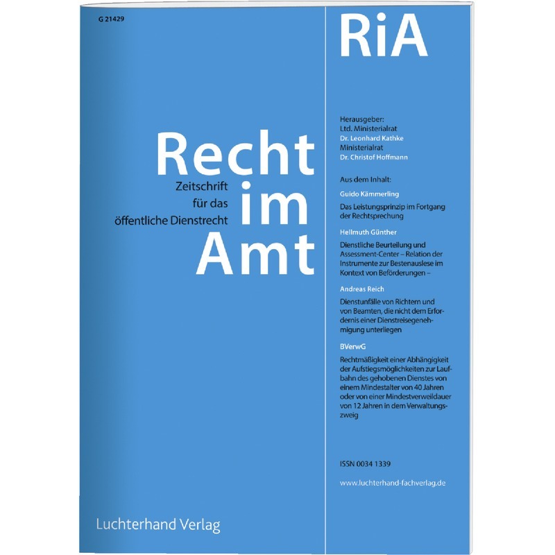 Recht im Amt ist die führende Fachzeitschrift für Behörden, Verwaltungen und öffentliche Betriebe. Die Zeitschrift unterrichtet über alle wichtigen Rechtsfragen, die für den Beamten, Angestellten und Arbeiter im öffentlichen Dienst von Bedeutung sind.