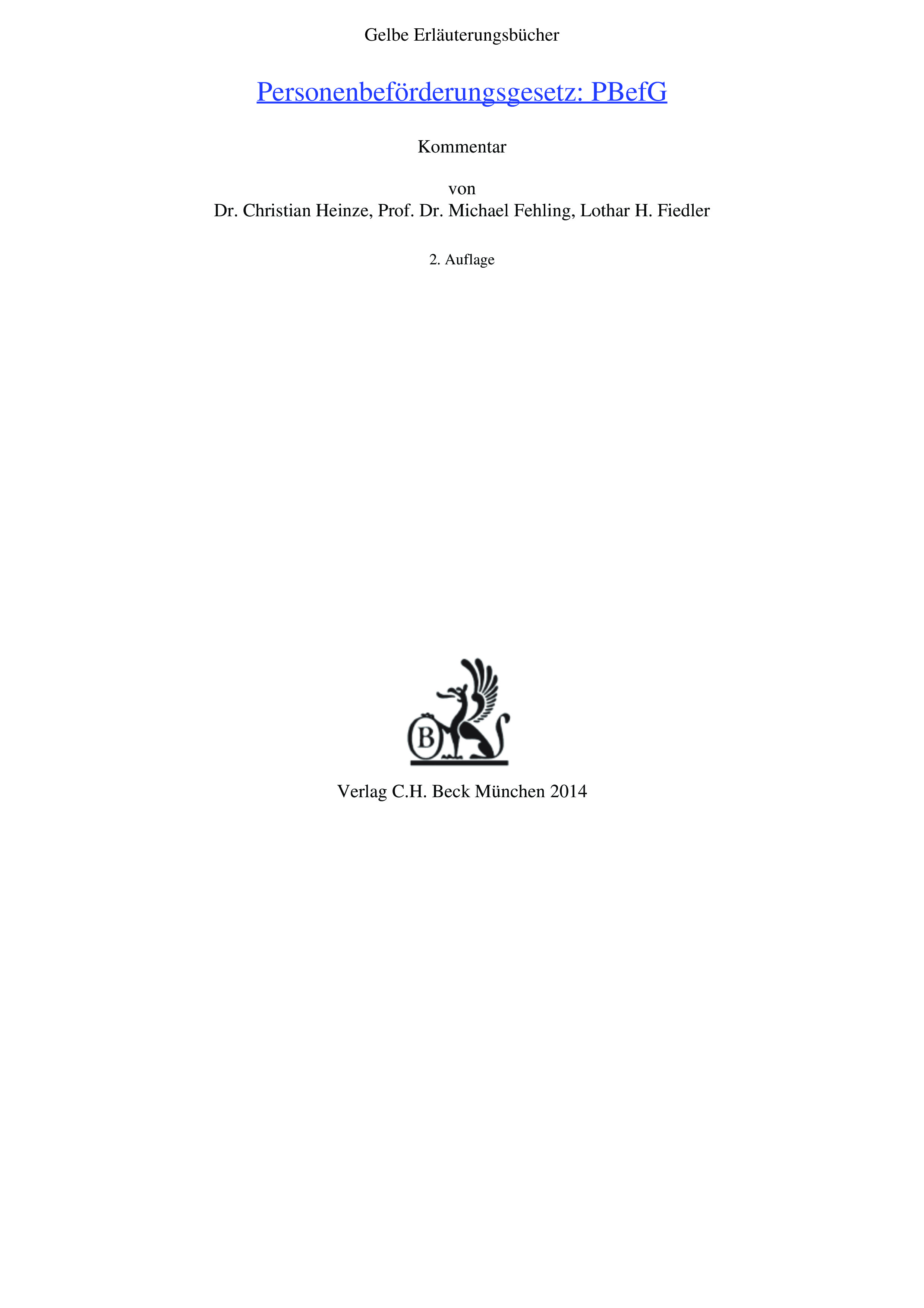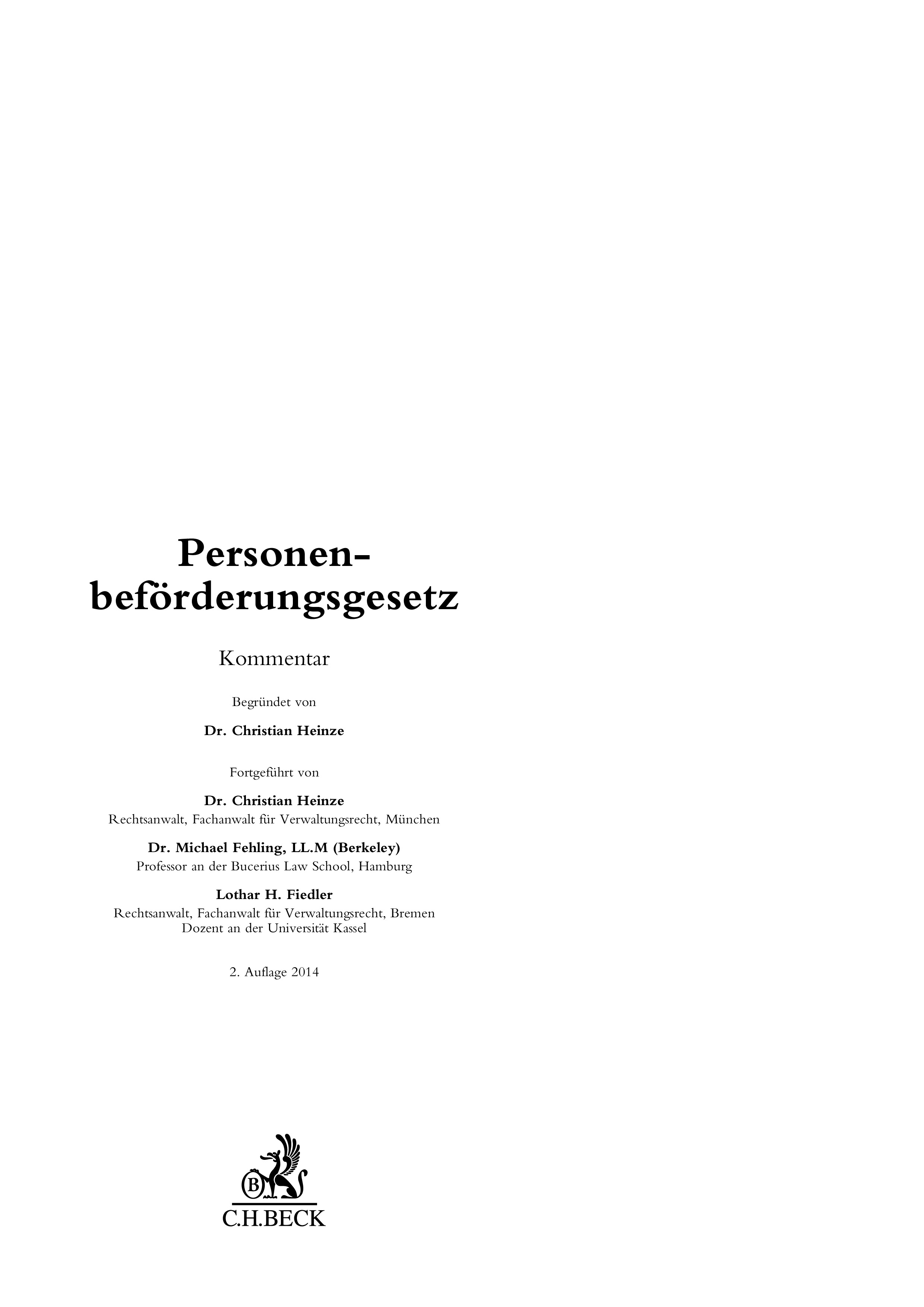 Dr. Christian Heinze ist FA für VerwR, Prof. Dr. Michael Fehling lehrt an der Bucerius Law School Hamburg, und RA Lothar H. Fiedler, FA für VerwR, sind anerkannte Fachleute und bereits mit zahlreichen einschlägigen Publikationen zum Personenbeförderungsrecht an die Öffentlichkeit getreten.