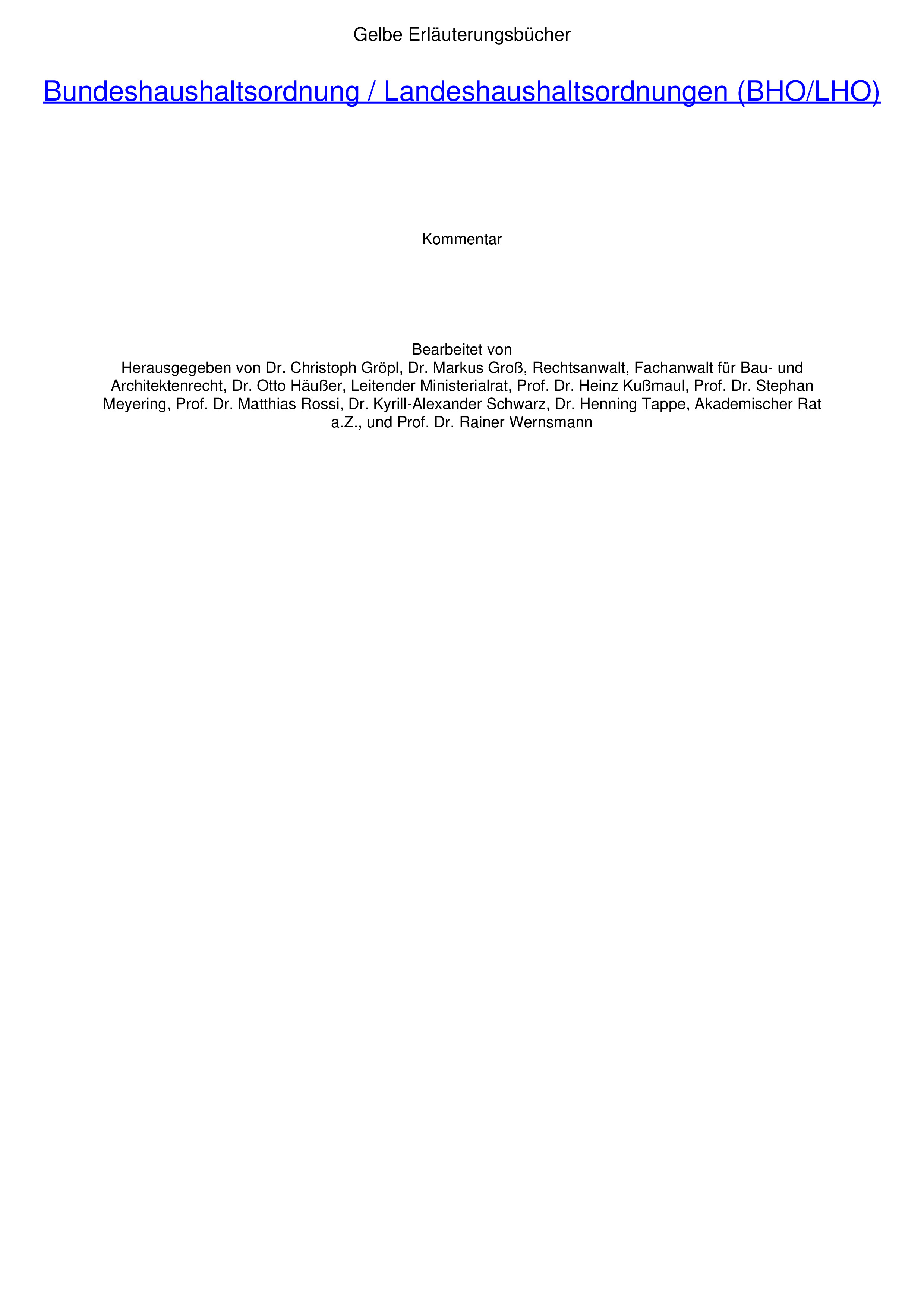 - kompakte und zugleich wissenschaftlich fundierte Kommentierung der BHO