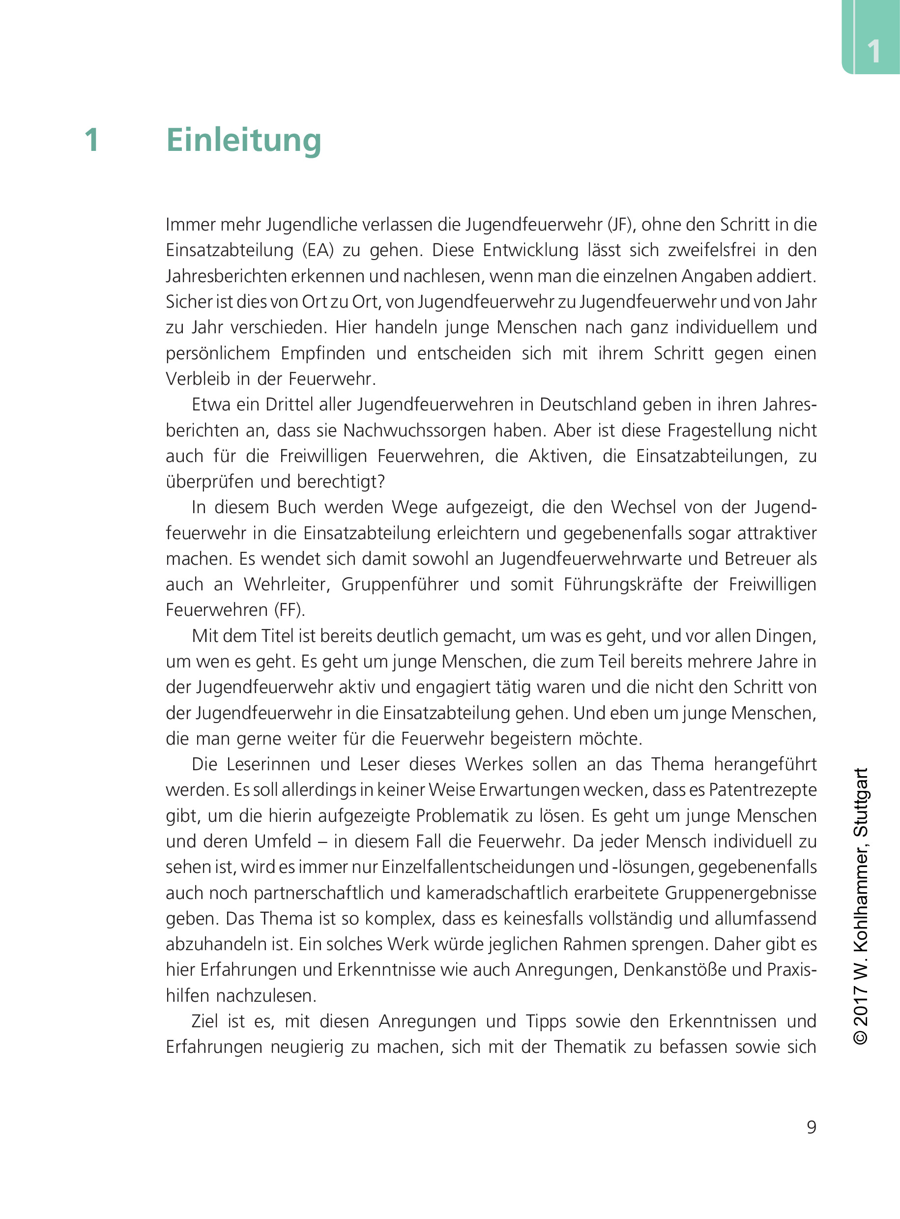 Das Buch beschreibt die Problematik beim Übertritt von der Jugendfeuerwehr in die Einsatzabteilung und mögliche Beweggründe für den Austritt. Es gibt Anregungen und Hinweise, wie der Übergang in die Einsatzabteilung gestaltet werden kann, damit es gelingt, die Anzahl der Austritte zu reduzieren.
