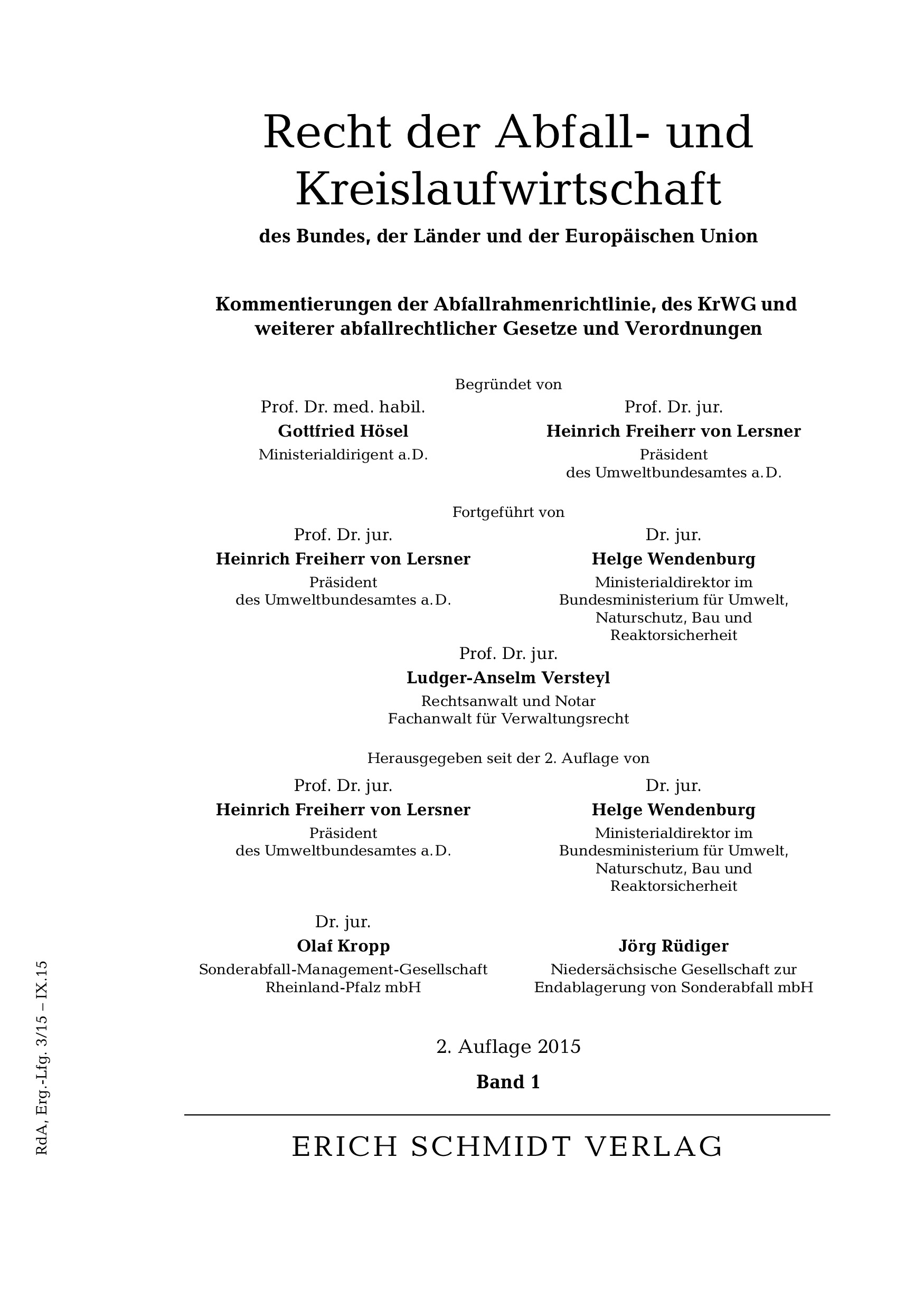 Produktinformationen "Recht der Abfall- und Kreislaufwirtschaft des Bundes, der Länder und der Europäischen Union - mit Fortsetzungsbezug"