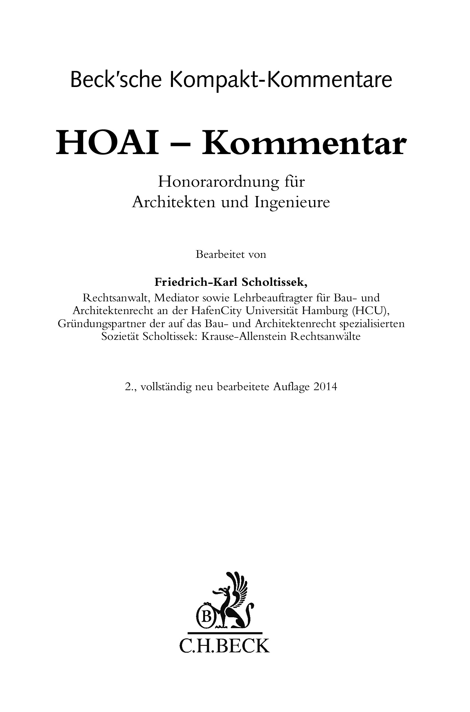 Für alle neu abzuschließenden Architekten- und Ingenieurverträge ist daher das Werk mehr als nur die Darstellung des neuen Rechts, sondern der praktische Begleiter und Ratgeber für eine sichere Vertragsgestaltung und Durchsetzung der Honoraransprüche.