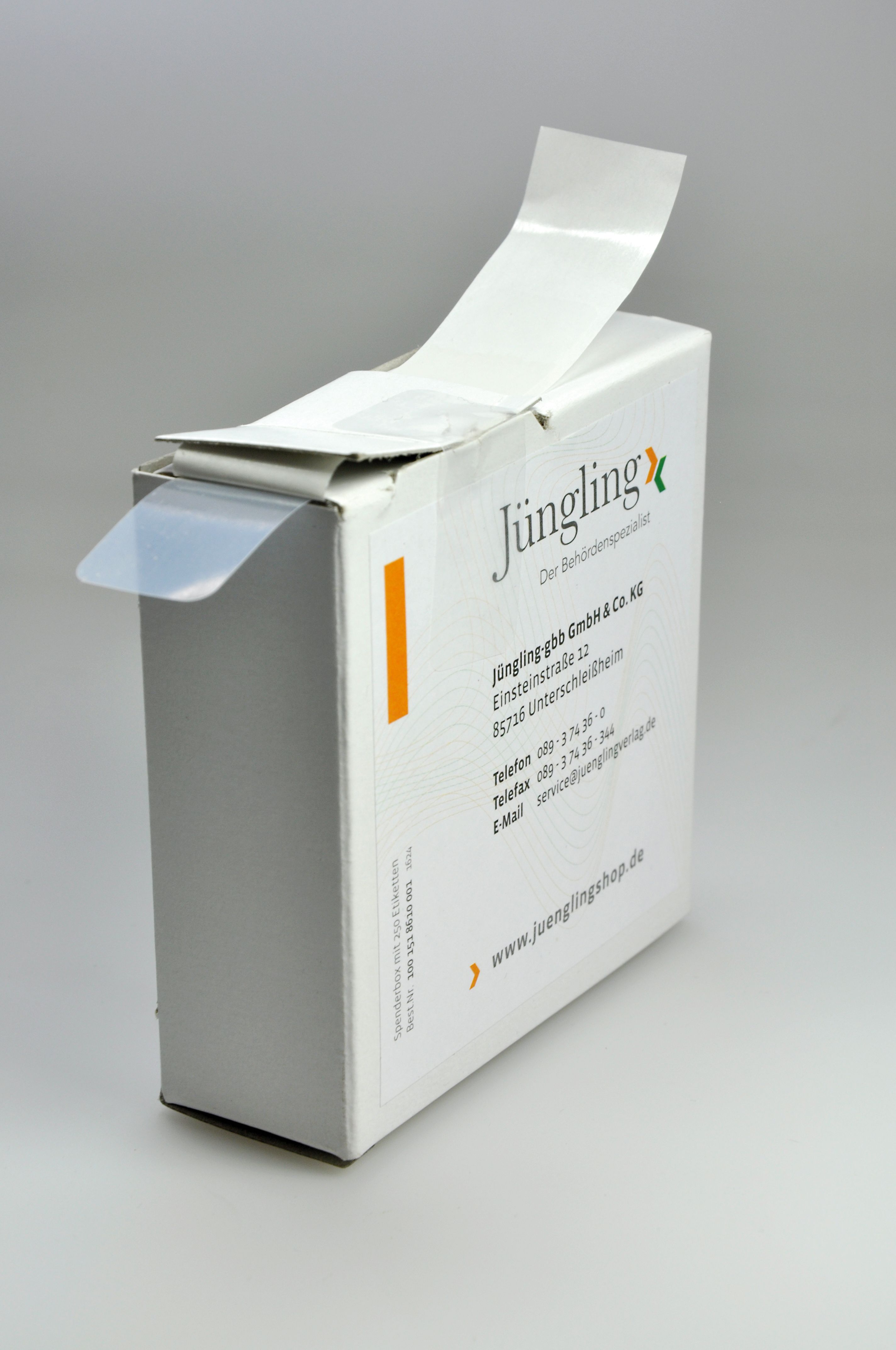 Die Schutzfolie für Adressaufkleber ist speziell für Personaldokumente im Scheckkartenformat konzipiert. In der praktischen Spenderbox erleichtert sie die Handhabung und den Schutz Ihrer Aufkleber. Die Folie besteht aus einer transparenten PE-Folie und haftet fest durch ihre Gummierung.