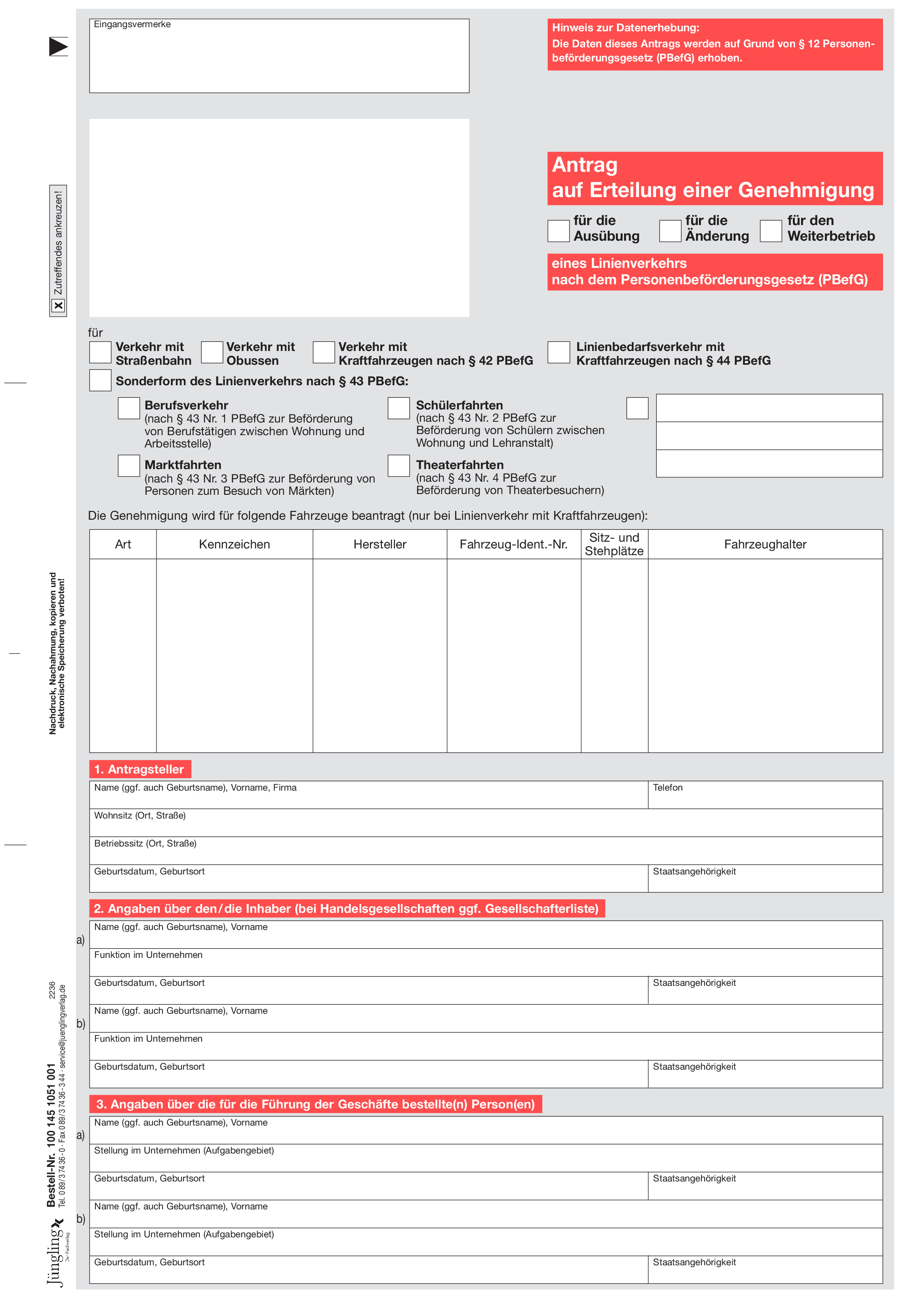 Antrag auf Genehmigung Linienverkehr, PBefG, A4, 4-seitig