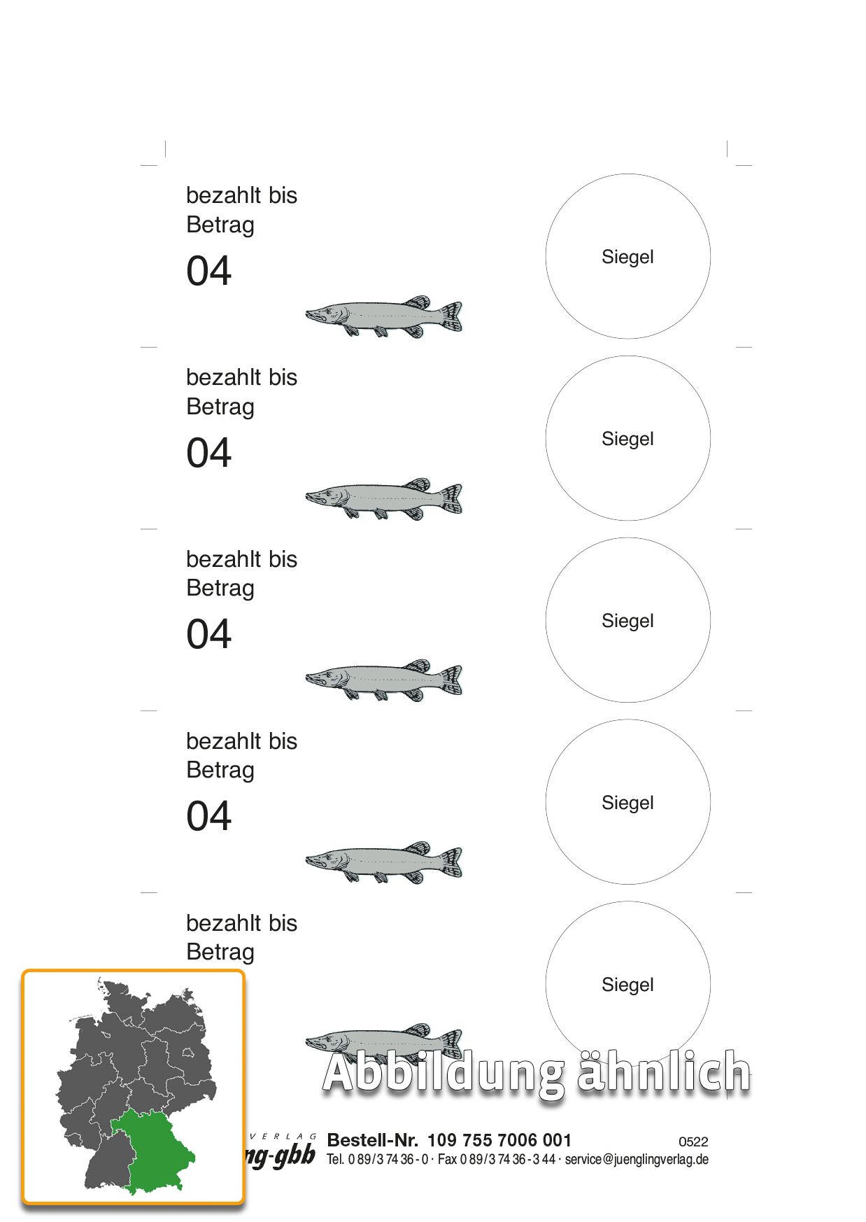 Der Aufkleber zur Verlängerung des Fischereischeins ist speziell für eine Gültigkeit von 5 Jahren ausgelegt. Die Etiketten sind aus hochwertiger Dokumentenfolie gefertigt und nummerisch aufsteigend nummeriert.