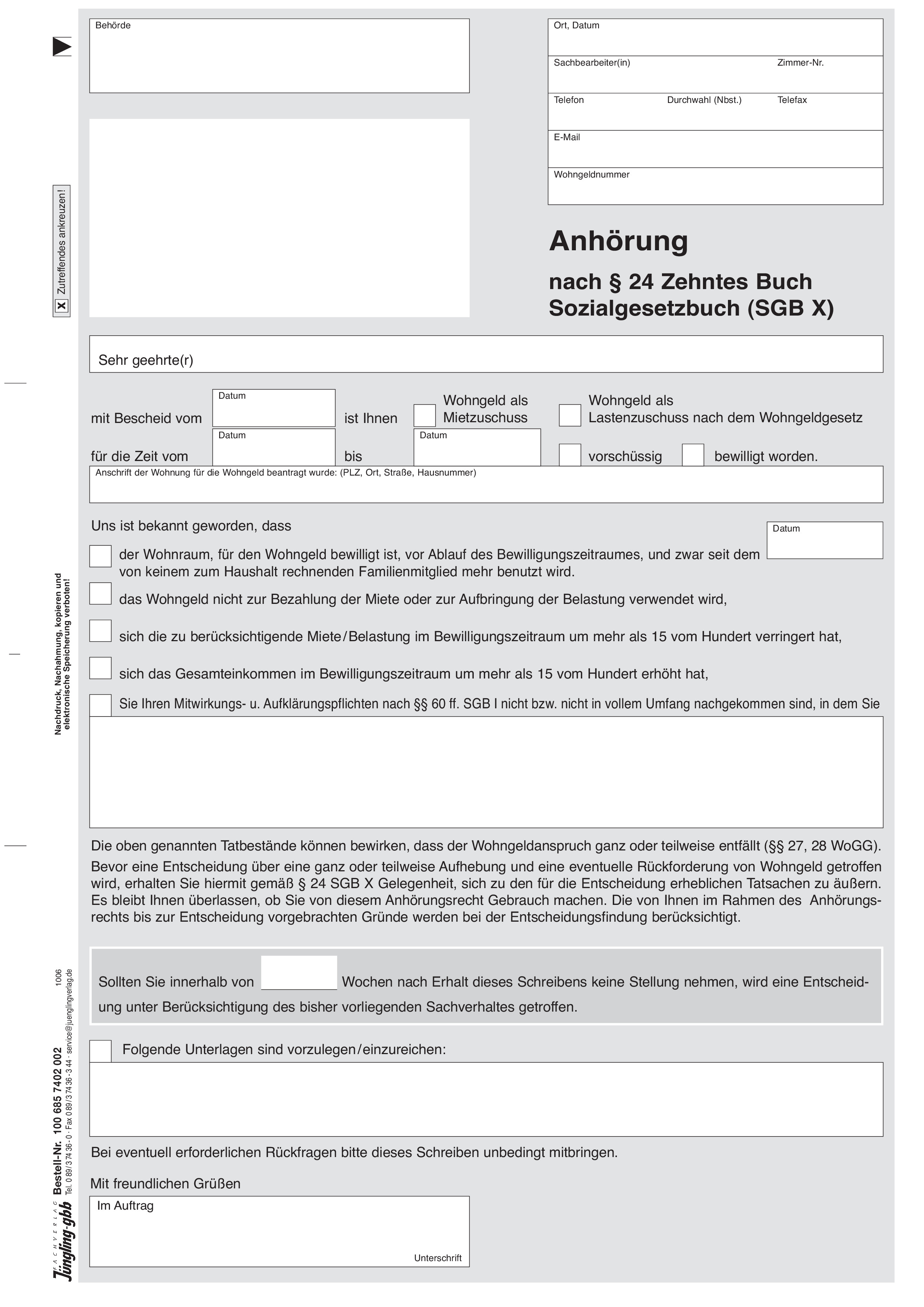 Produktinformationen "Anhörung nach § 24 SGB X, A4, 2-fach"